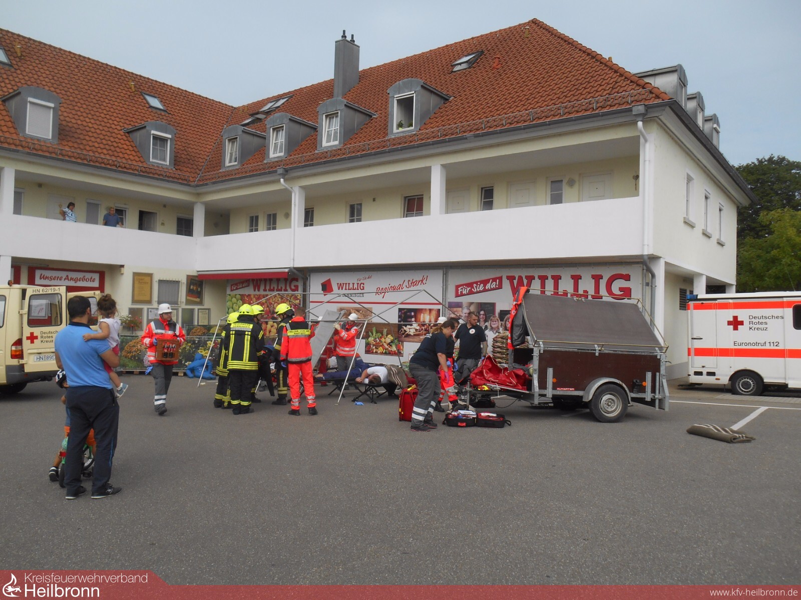 Zur Übung war auch die Bevölkerung recht herzlich eingeladen, was sehr gerne angenommen wurde. Zahlreiche Schaulustige verfolgten interessiert die Arbeit der Feuerwehr und des DRK.