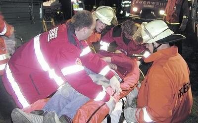 Drei Rettungswagen und ein Krankenwagen des ASB Heilbronn mit Einsatzleiter Benjamin Lorenz unterstützten die Wehren inzwischen vor Ort. Mit Rettungsschere und Spreizer befreiten die Feuerwehrleute eine eingeklemmte Frau hinter dem Steuer eines Fahrzeugs. Sanitäter versorgten einen Mann mit einer „schweren Schädelverletzung“, andere Unfallopfer standen unter Schock. Nach knapp einer Stunde war der Einsatz vorbei. Die „Unfallopfer“ waren auf dem Weg ins Krankenhaus und das auslaufende Gefahrgut war beseitigt.