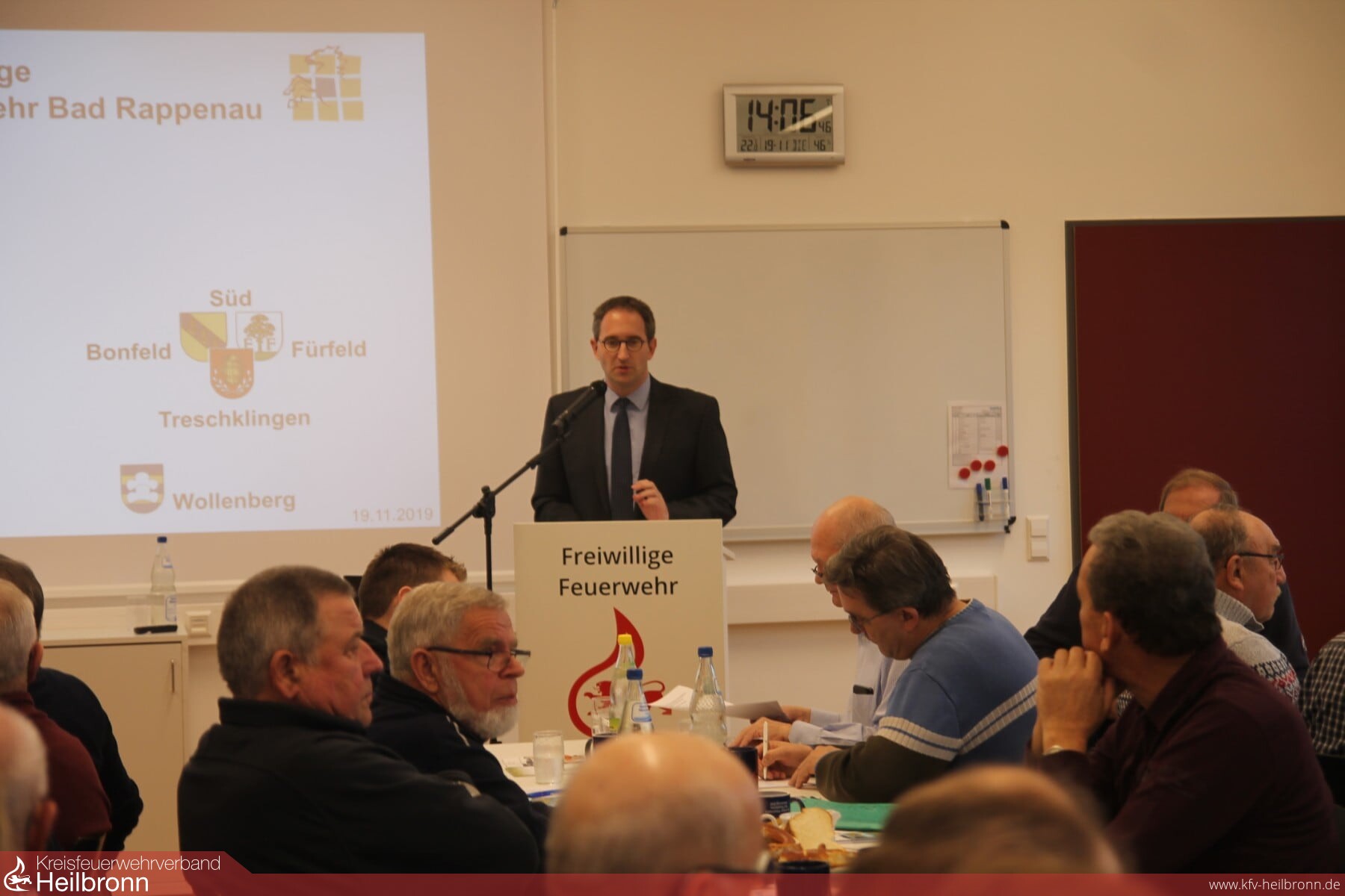 OB Sebastian Frei stellte in seinem Grußwort die Kurstadt Bad Rappenau als grüne, lebenswerte Stadt vor. Sie hat 22000 Einwohner und kann mit acht Stadtteilen sowohl Bürgern als auch Gästen einiges bieten. So prägen der traditionelle Kurbetrieb, Hotels, Parkanlagen und das Sole-Bad das Stadtbild. Außerhalb haben sich in den letzten Jahren auch die Industriegebiete weiter entwickelte so dass, das betonte der OB, eine kontinuierliche Weiterentwicklung der Stadt auch außerhalb des Kurbetriebs gegeben ist. Natürlich stecke die Stadt auch erhebliche Mittel in ihre Feuerwehr um die Einsatzfähigkeit zu sichern. Darum haben inzwischen die Planungen für ein neues Feuerwehrhaus Kernstadt begonnen.