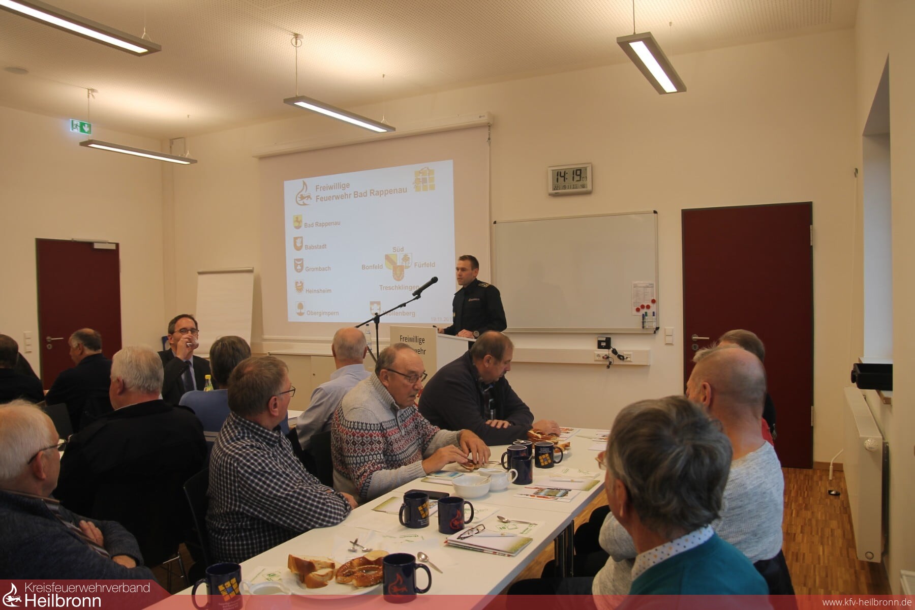 Kommandant Felix Mann informierte nun mittels einer Powerpoint Präsentation über die Bad Rappenauer Feuerwehr und ihre Struktur. Sie besteht aus insgesamt acht Abteilungen, die eine Markungsfläche von knapp 75 km2 mit einem vielfältigen Einsatzspektrum abdecken muss. Diesen Ansprüchen kann die Feuerwehr nur gerecht zu werden, weil 3,5 Vollzeitstellen in der Feuerwehr ausgewiesen sind. Allein mit ehrenamtlichen Kräften wären diese Aufgaben nicht zu stemmen.