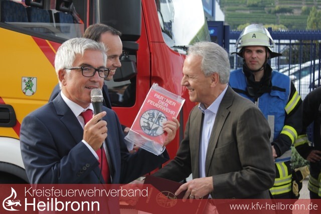 Auch Bürgermeister Klaus-Peter Waldenberger dankt allen Beteiligtenfür die Bereitschaft, sich bei Feuerwehr und DRK für die Nächsten einzusetzen. Einen großen und besonderen Dank richtet der Lauffner Bürgermeister aber an den Lauffener Ehrenbürger und Geschäftsführer der Firma Schunk GmbH & Co. KG, Herrn Heinz-Dieter Schunk. In diesem Jahr zeichnet die Stadt Lauffen und die Feuerwehr, auch stellvertretend für die Kommunen und Feuerwehren der umliegenden Ortschaften, die Firma Schunk zum „Partner der Feuerwehr“ aus.
