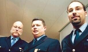 Bild: Kommandant Karl Wehler (links) mit zwei der geehrten: Oberbrandmeister Siegbert Uzelmaier und Löschmeister Andreas Urban.