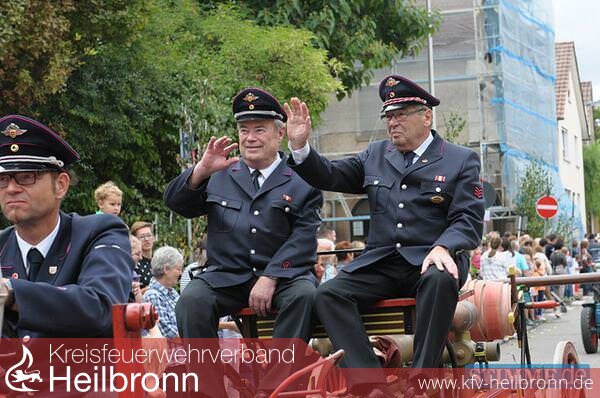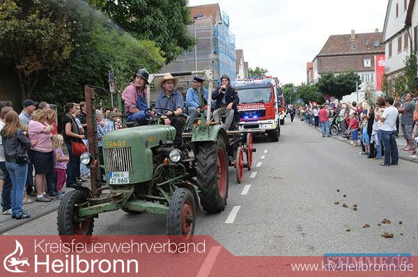 Es war ein anderer Festzug als in früheren Jahren. Der Umzug beim Leingartener Käsritt war am Sonntagnachmittag geprägt vom runden Jubiläum der Freiwilligen Feuerwehr, die ihr 150-jähriges Bestehen feiert. Etwa 20 Feuerwehren aus dem gesamten Landkreis Heilbronn waren mit neuen und alten Fahrzeugen ins Leintal gekommen, um ihre Kameraden beim Geburtstagsumzug zu unterstützen. Motto: „Feuerwehr damals und heute“.