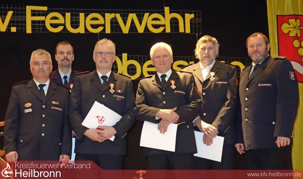 „Beide prägen seit 38 Jahren die Feuerwehr und sind Garanten für Qualität“, freute sich Verbandsvorsitzender Reinhold Gall über die Ehrung von Jürgen Schaffert und Valentin Vollert und überreichte ihnen die Feuerwehrehrennadel vom Kreisfeuerwehrverband Heilbronn. Beim Beitrag von Dirk Grützmacher kamen nachdenkliche Momente auf. „Es gibt Einsätze, die mit dem Tod enden. Manche können so etwas nicht vergessen. Um zu helfen, gibt es die Fachgruppe Notfallseelsorge“, so Grützmacher.