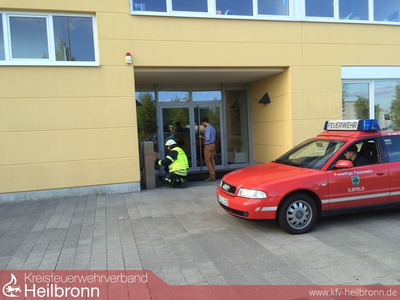 So lautete die Meldung beim Eintreffen der Feuerwehr Ilsfeld am vergangenen Montag, 20.07.2015, bei der Firma Becker-Schoell im Industriegebiet in Ilsfeld. Im Rahmen einer Alarmübung wurden die Einsatzkräfte um 19:09 Uhr alarmiert.