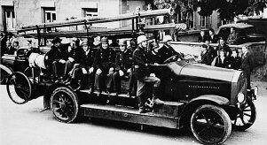 Bild: Ein Kraftspritzenfahrzeug LF 21: Das Fahrzeug wurde 1947 gebraucht von der Stadt Ulm erworben. Die Aufnahme stammt vom Festumzug 1949. (Repro: Gerhard Dubinyi)