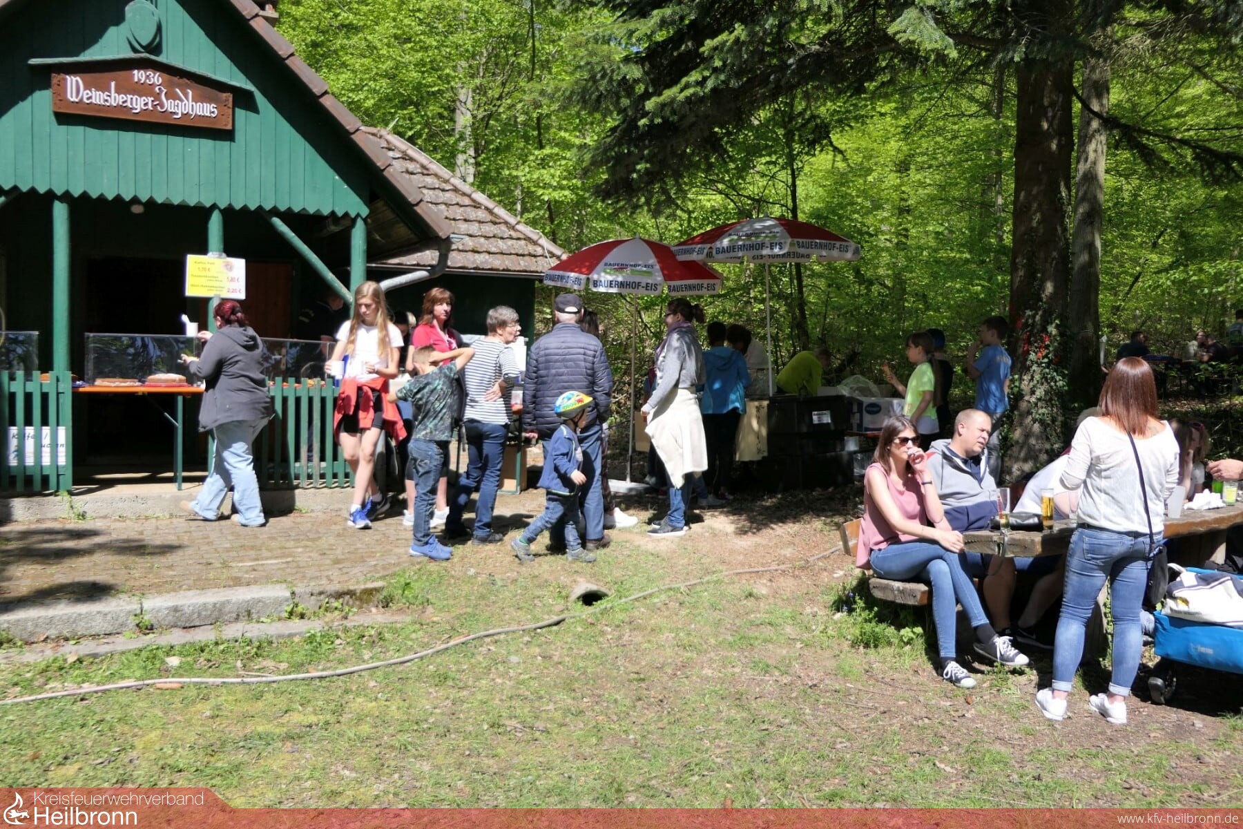 1. Mai-Feiertag und strahlender Sonnenschein - die besten Voraussetzungen für eine Fahrrad-Tour oder eine Wanderung in den Wald zum Weinsberger Jagdhaus bei Gemmingen. Dorthin lud die Freiwillige Feuerwehr Gemmingen auch in diesem Jahr zum traditionellen Feuerwehrfest ein. Mit selbstgemachten Schnitzeln, Waldburgern, Pommes, Wurst, Currywurst und Getränken wurden die Besucher aus Gemmingen, Stebbach sowie nah und fern bewirtet. Auch ein reichhaltiges Kuchenbuffet und Kaffee wurde angeboten. Sehr beliebt war insbesondere wegen des tollen Wetters auch der Eisstand von „Sorgs Bauernhofeis“. Bereits zur Mittagszeit bis weit in den Nachmittag hinein waren die bereitgestellten Bänke und Tische erfreulicherweise voll belegt.