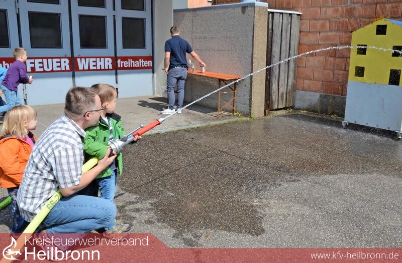 Das Jubiläum soll drei Tage lang vom 17. bis 19. Mai 2019 gebührend gefeiert werden, informiert der stellvertretende Abteilungskommandant Markus Eggensperger. Für die Feierlichkeiten wird vor dem Feuerwehrmagazin auch ein großes Festzelt aufgebaut. “Mit dem Wetter haben wir heute wieder Glück„, freut sich Maik Widowski mit Blick in Richtung Himmel. Rund 50 Helfer seien an diesem Tag für die Bewirtung und die verschiedenen Programmpunkte im Einsatz, berichtet der Abteilungskommandant. Für die kleinen Gäste sind die Fahrten mit dem Löschgruppenfahrzeug LF 8/6 sicherlich das Größte. Das Zielspritzen vor dem Feuerwehrmagazin, das Tollen auf der Hüpfburg, Basketball spielen oder Büchsen werfen sind weitere Aktivitäten die den Jungen und Mädchen sichtlich Spaß bereiten.