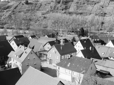 Infolge eines Scheunenbrandes wurde das gefährdete Rathaus (Bildmitte mit kleinem Glockenturm) in Siglingen 1927 völlig ausgeräumt.