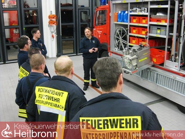 Am vergangenen Mittwoch, den 24. Februar wurde den Führungskräften der Feuerwehren Untergruppenbach und Abstatt im Feuerwehrhaus Abstatt, die Gerätewagen Gefahrgut der Feuerwehr Weinsberg und der Gerätewagen Messtechnik der Feuerwehr Lauffen vorgestellt. Hierbei ging es um das Einsatzspektrum, die Ausrüstung, und die entsprechenden Messgeräte der Sonderfahrzeuge. Des Weiteren standen die Kameraden der Feuerwehren Lauffen, Jochen Eberbach und Timo Eichelhard und die Kameraden der Feuerwehr Weinsberg, Roland Wirth und Jochen Wengert mit Ihrem Fachwissen zur Seite. Im Anschluß wurde auch auf offene Fragen der Führungskräfte eingegangen und erläutert.