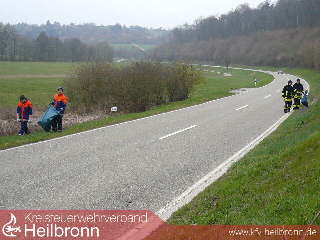 Auch in diesem Jahr fand wieder einmal eine Waldreinigung der Jugendfeuerwehr Neudenau mit den örtlichen Jägern, unter der Leitung von Ernst Vogt und Jürgen Pischinger, statt.Zum ersten Mal war auch die Gruppe der neu gegründeten Kinderfeuerwehr dabei und unterstützte tatkräftig.Treffpunkt war um neun Uhr am Bauhof in Neudenau.Nachdem alle Gruppen eingeteilt waren ging es auch schon los.Die Kinderfeuerwehr startete im Bereich des Freibadparkplatzes und säuberte den Weg bis zur Gangolfskapelle.Der Einsatzbereich der Jugendfeuerwehr war die L 526 und die L 1096 Richtung Untergriesheim.