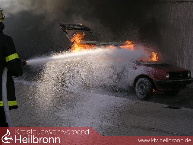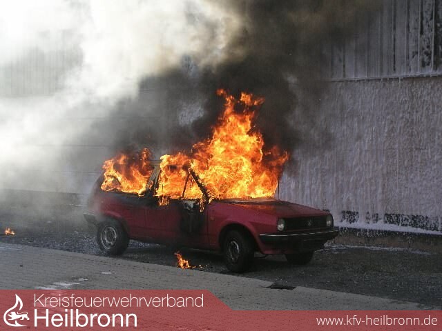 Um die Effektivität dieser Löschmethode vorzuführen, wurde auf einem Übungsplatz ein Pkw in Brand gesetzt. Nach ausreichender Vorbrenndauer wurde dann an dem im Vollbrand stehenden Wagen die Wirksamkeit und anwenderfreundliche Handhabung beim Ablöschen des Fahrzeugs unter Beweis gestellt.