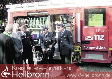 Stolz zeigt Kommandant Hagner den Interessierten die technischen Raffinessen des LF 10/12 Löschgruppenfahrzeuges, das in der Gesamtgemeinde Ilsfeld zum Einsatz kommen wird. Für die technische Hilfeleistung, besonders bei Unfällen, stehe das hydraulische Rettungsgerät mit Schere und Spreizer zur Verfügung. Der Wassertank mit 1200 Litern Inhalt diene im Brandfall der Überbrückung, bis das Wasserleitungssystem steht. „Immerhin einen Zimmerbrand können wir damit löschen“, weiß Werner Schuchmann, Zugführer in Ilsfeld und stellvertretender Kommandant.