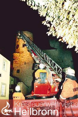 Über Handy wird die Feuerwehr Bad Wimpfen um Hilfe gebeten. Der Alarm erfolgt unverzüglich. Wegen der besonderen Problematik der historischen Anlage werden die Wehren Neckarsulm, Bad Rappenau und die Solvay Werksfeuerwehr ebenfalls alarmiert. Das DRK Bad Wimpfen rückt mit neun Kräften aus, da offenbar mehrere Personen eingeschlossen sind und mit Verletzten zu rechnen ist.