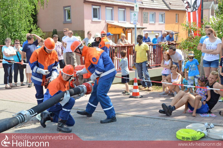 Nachwuchs Eine eigene Show für den Sonntagnachmittag hat sich die Zaberfelder Jugendfeuerwehr ausgedacht. Erst vor Kurzem hat die Truppe um Jugendwart Uwe Bohse zusammen mit dem Güglinger Feuerwehrnachwuchs in Schwaigern die begehrten (Leistungs-)Abzeichen „Jugendflamme, Stufe 2 und 3“ erfolgreich absolviert. Die dort geforderte Übung präsentierten die Nachwuchs-Wehrleute den Besuchern jetzt noch einmal auf dem Parkplatz und vor der Bushalle des Reisebüros Stuber. Und zum großen Spaß aller Kinder bauten sie am Ende dann auch noch eine Riesendusche auf.