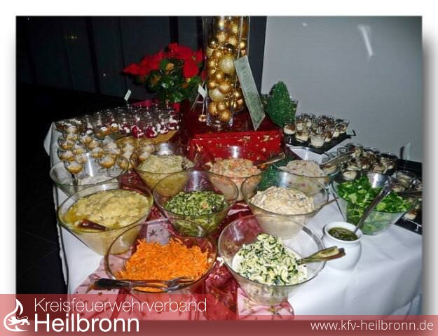 Der offizielle Teil war gegen 22.00 Uhr beendet und die Feier ging in den gemütlichen Bereich über. Ein großer Dank der Feuerwehr gilt dem Team der Metzgerei Bären\", welches ein vorzügliches Essen, bestehend aus Suppe, Vorspeise, verschiedenen Hauptgängen, Salatbuffet und einem zur Weihnachtszeit passenden Nachtisch zauberte, den beiden Trompetern für die musikalischen Beiträge sowie Berta Pfefferle für ihre lustige und gekonnte Entführung in die Welt einer Single-Mittfünfzigerin.
