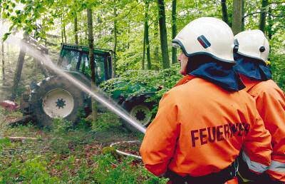 Das Szenario: ein Unfall mit einer Holz-Vollerntemaschine, die einen Waldbrand zwischen Prevorst und Stocksberg auslöst. Großalarm. Diese Hauptübung hielt über 50 Feuerwehrleute aus Oberstenfeld, Beilstein und Wüstenrot-Neulautern auf Trab.