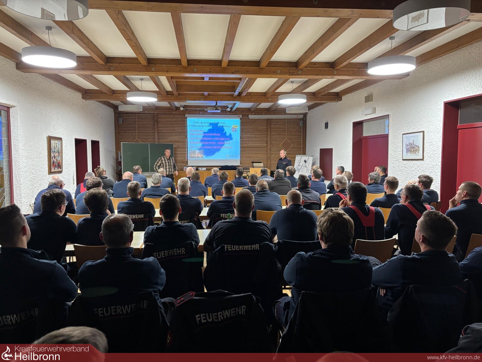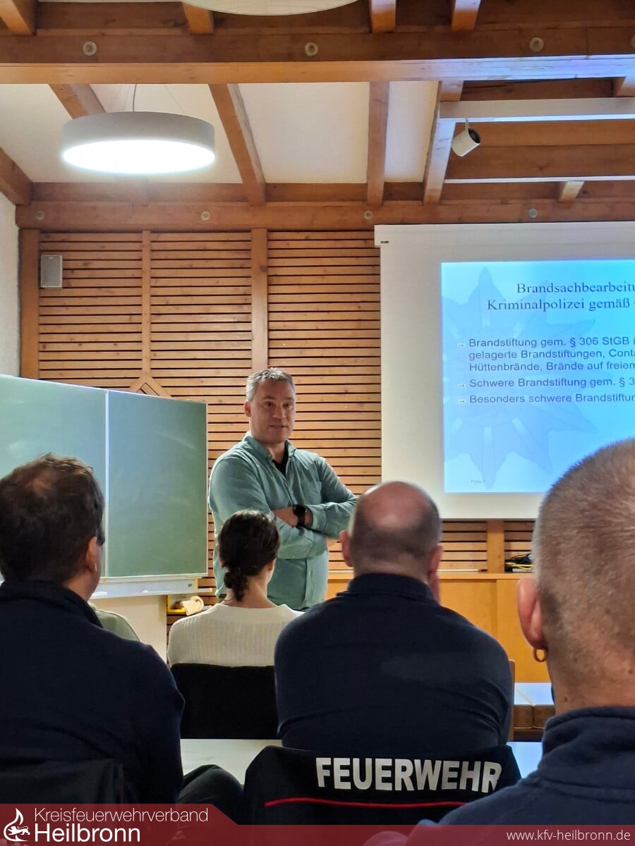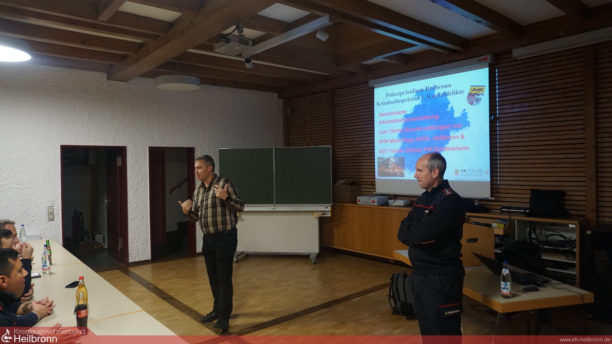 Am 7. und 14. November hielten Kriminalhauptkommissar Mario Rapp vom Polizeipräsidium Heilbronn und der Kommandant der Feuerwehr Gundelsheim, Tobias Gärtner, einen Fachvortrag zum Thema Brandermittlungen. Geladen waren alle Mitglieder der drei Einsatzabteilungen sowie einige Kameraden der Feuerwehr Erlenbach. Der Vortrag entstand im Jahr 2021 aus einer gemeinsamen Initiative von Polizei und Feuerwehr im Rahmen der Aufarbeitung der größten Brandstiftungsserie der Nachkriegszeit in Gundelsheim im Jahr 2020.