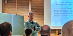 Im Rahmen ihres Fachvortrags erläuterten die beiden Referenten, wie Feuerwehr und Polizei bei Ermittlungen zu Brandstiftungen zusammenarbeiten und sich hierbei gegenseitig unterstützen können. Sie erwähnten beispielsweise, dass bei einer so komplexen Sachlage jedes Detail von Bedeutung sein kann und deshalb auch die Trupps, die z. B. im Innenangriff tätig waren, anschließend vernommen werden können. Dies ist äußert wichtig, da sie Eindrücke vom direktem Brandgeschehen haben, die später sonst nur noch schwer nachvollziehbar sind (Schließzustand einer Tür, verstellte oder verschlossene mögliche Flucht- bzw. Rettungswege usw.).