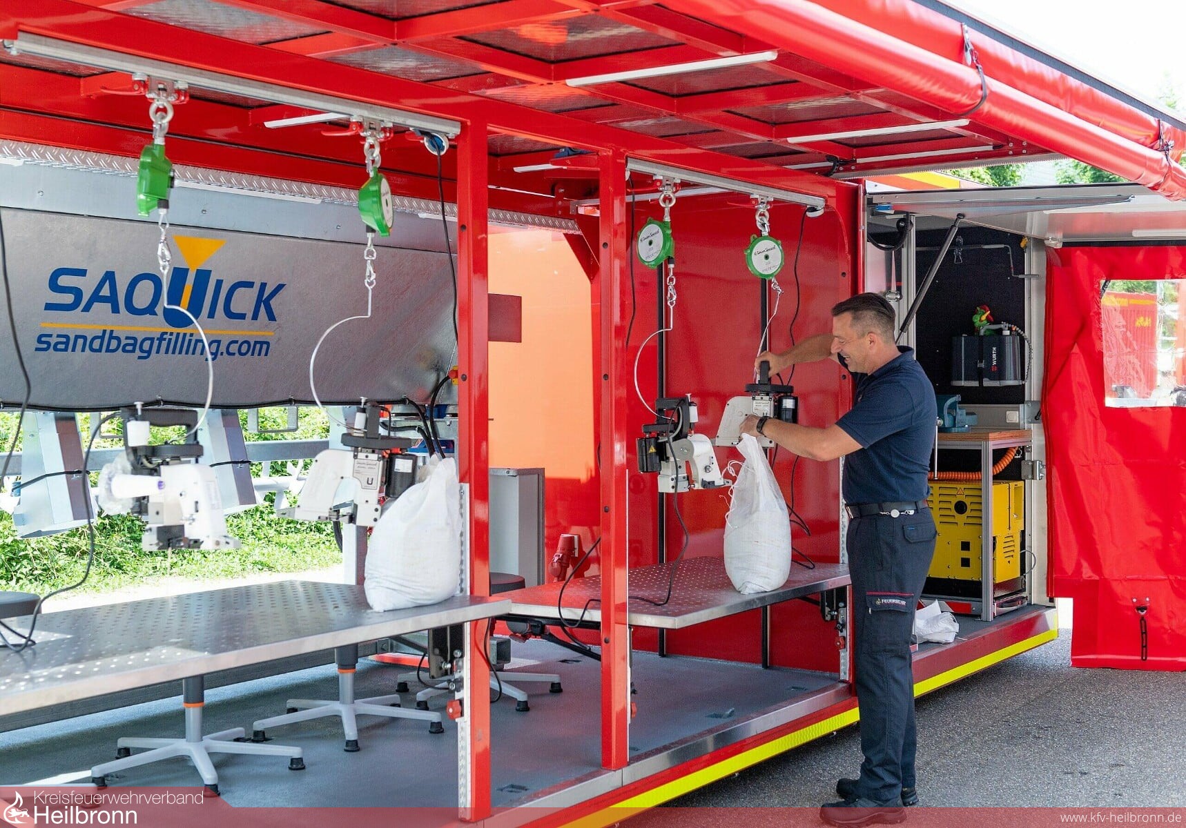 Die Feuertaufe hat sie bestanden bei der Unwetterlage Anfang Juni, die Sandsackabfüllanlage, die der Landkreis Heilbronn 2020 angeschafft hat. Ebenso wie einen neuen Einsatzleitwagen 2 (ELW2), der den Feuerwehren bei großen Gefahrenlagen modernste Technik für die Fernmeldegruppe, die Einsatzleitung und die Führungsgruppe des Landkreises bietet. Die beiden Neuanschaffungen sind in Neckarsulm stationiert.