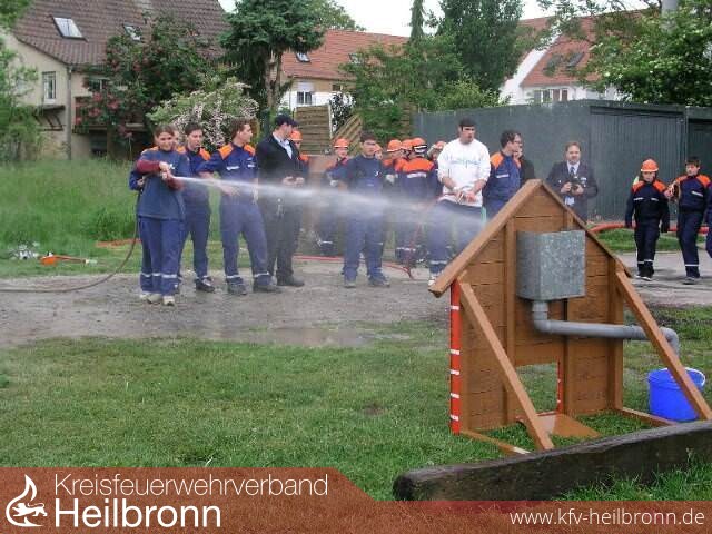 Ob beim Leinenbeutel-Zielwerfen, bei dem eine Feuerwehrleine samt Beutel in ein Punktefeld möglichst weit und zielgenau geworfen werden und der Werfer das Leinenende am Schluss auch noch in der Hand behalten musste, oder beim „Spritzhäuschen“ - hier mussten von jedem Teammitglied die danebenstehenden Auffangbehälter in kürzestmöglicher Zeit mit Wasser befüllt werden - die Mädchen und Jungs der einzelnen Jugendfeuerwehren waren eifrig und engagiert bei der Sache. Schließlich galt es, dem Vorjahressieger, der Jugendfeuerwehr Bad Friedrichshall, den Wanderpokal abzujagen.