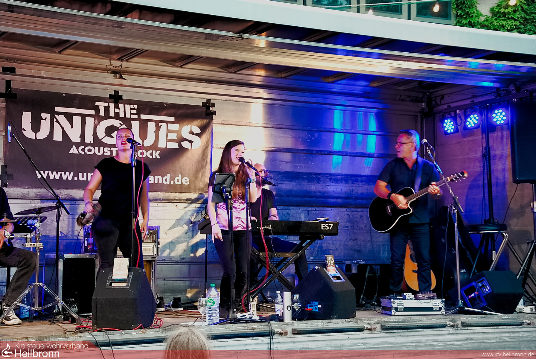 Entgegen aller Wetterprognosen wurde der Samstagabend ein herrlich warmer Sommerabend. Durch den Auftritt der Akustikrockband „The Uniques“ wurde er noch weiter aufgeheizt. Die „im Ländle“ sehr bekannte Band sorgte mit ihrer Covermusik wieder einmal für eine super Stimmung. Kommentar der Band: „Wir hätten keinen Penny auf einen trockenen Abend gesetzt, aber das Wetter hielt und es wurde eine großartige Party!“