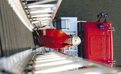 Bild: Valentin Vollert hatte früher Höhenangst, heute steigt er die 108 Stufen der Obersulmer Drehleiter in steilster Stellung empor. (Foto: Gustav Döttling)