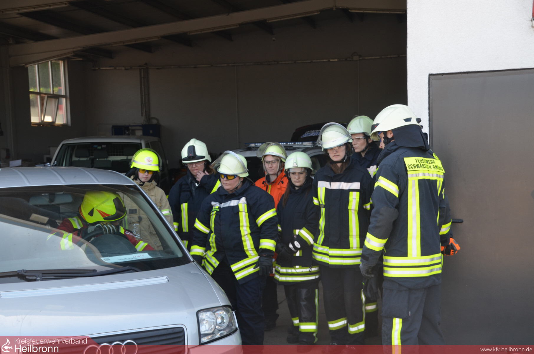 An drei Stationen mussten unterschiedlich Unfallszenen in Gruppenarbeit bewältigt werde. Dabei wechselten die Gruppen durch, so dass jede Gruppe ein mal an jeder Station arbeitete. Zu den bereits bekannten Techniken wurden vom Ausbilder ständig neue Möglichkeiten vorgestellt und ausprobiert. Mit staunen konnte so immer wieder erkannt werden, was mit Hilfe der Geräte machbar ist, wenn man weiß wie man sie anwenden kann.