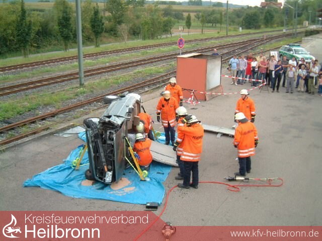 Immer wieder werden die Floriansjünger auch zu Unfällen gerufen. Beim Bergen der Unfallopfer, erklärte Uwe Schlund, zählt nicht nur Schnelligkeit, sondern vor allem die patientengerechte Rettung. Wie die funktioniert, zeigten die Wehrmänner bei einer spannenden Vorführung anhand eines umgekippten Fahrzeuges, in dem sich Andreas Ohr und Christian Zahner als „Opfer“ befanden.