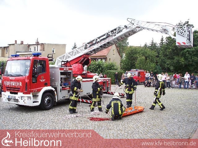 Da an diesem Wochenende auch das traditionelle Floriansfest des Zipsendorfer Feuerwehrvereins stattfand, war für das restliche Programm bestens gesorgt, so konnten wir uns bei einer Vorführung am Samstag Nachmittag sogar einen Eindruck über die Arbeitsweise mit unserer zukünftigen Drehleiter verschaffen, da in Meuselwitz eine solche bereits seit 2004 im Einsatz ist.
