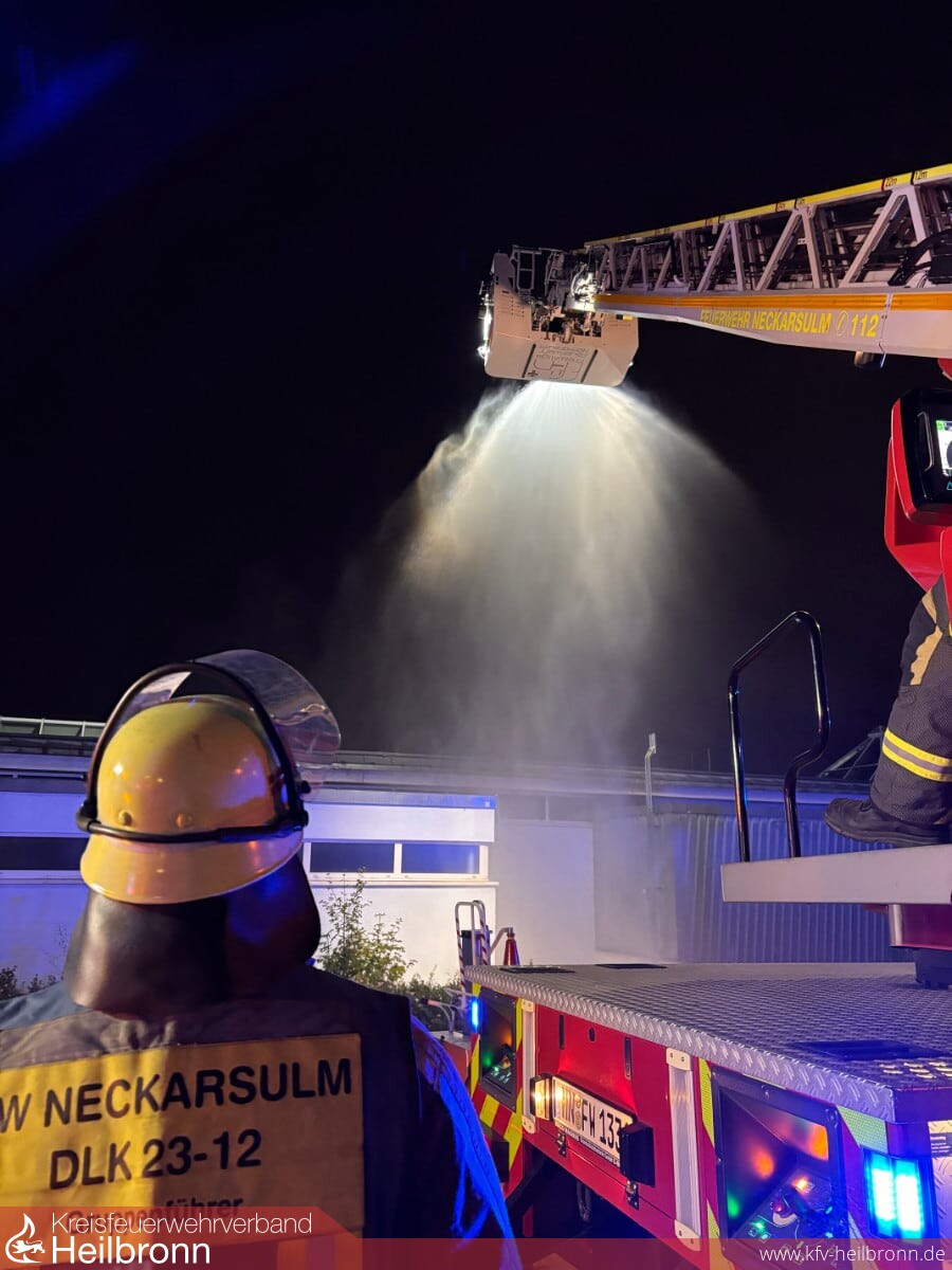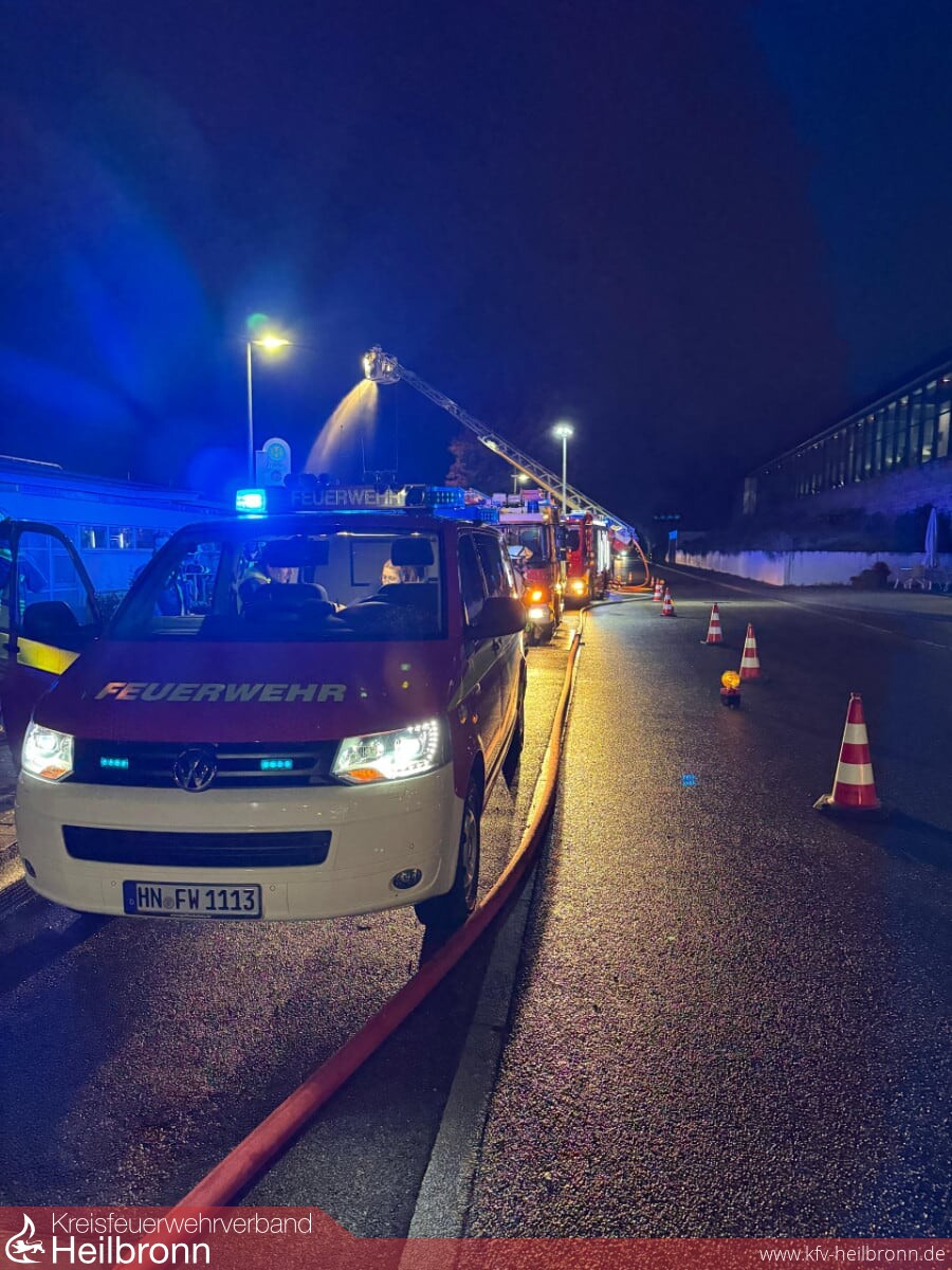 Kurz nach dem ELW aus Neckarsulm und dem LF10 aus Dahenfeld trafen auch das 2. Löschfahrzeug und die Drehleiter der Abteilung Neckarsulm an der Einsatzstelle ein.