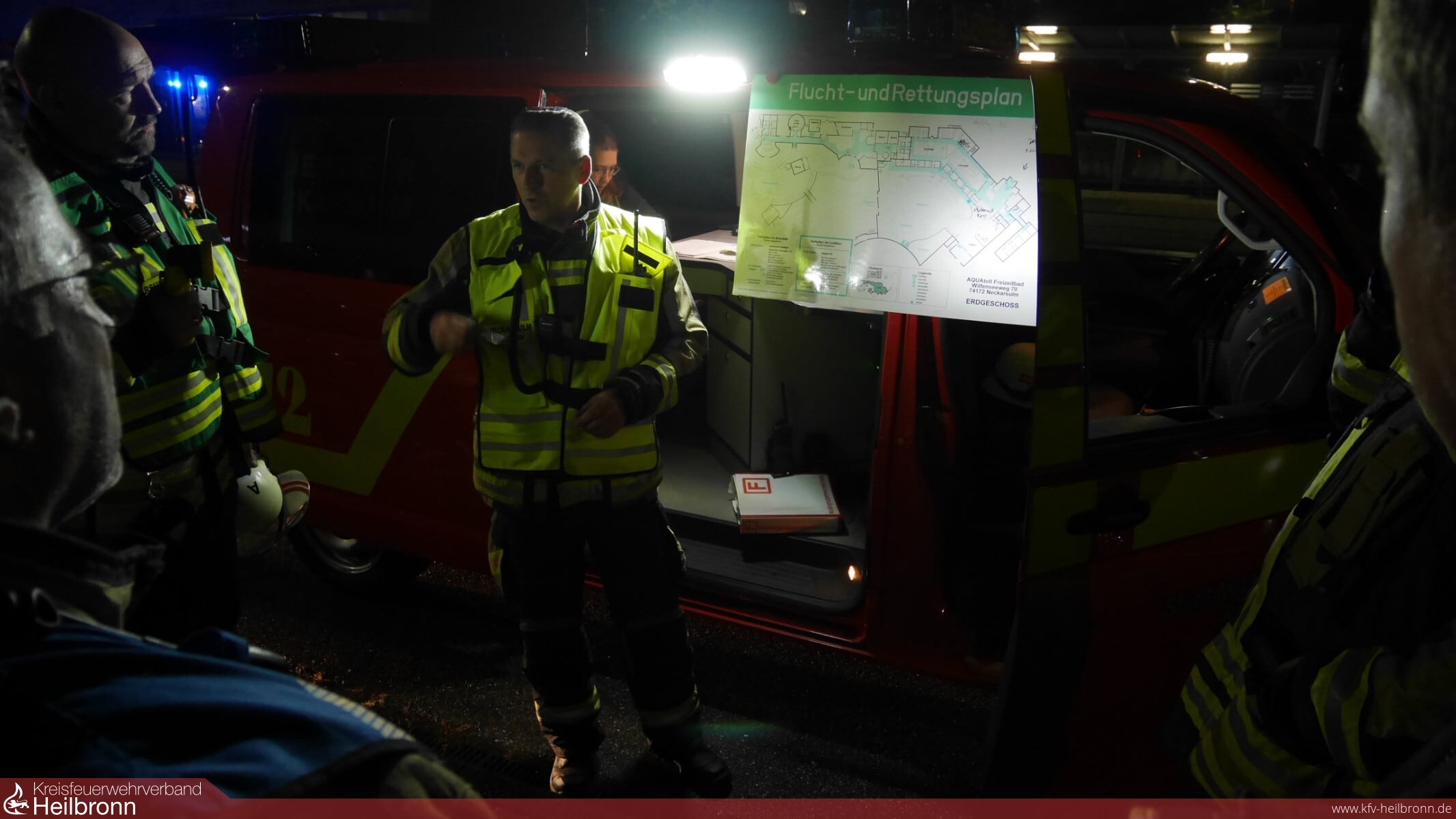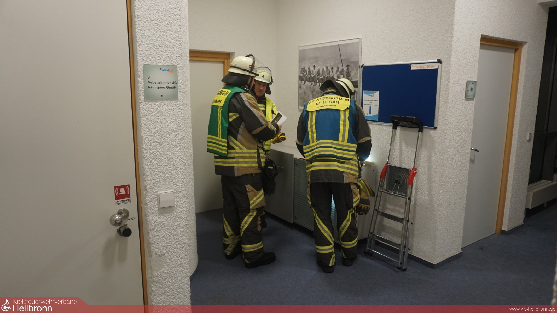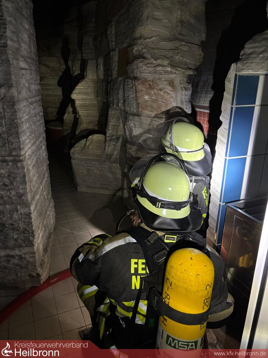 Wenig später traf als Ergänzung das LF10 der Abteilung Obereisesheim ein. Diese Mannschaft übernahm den Auftrag der Menschenrettung im Bereich „Salzgrotte“. Beim Absuchen musste zuvor ein simulierter Brand aufgefunden und gelöscht werden. Der Angriffstrupp fand im Anschluss die vierte vermisste Person, die ebenfalls ins Freie gerettet wurde.