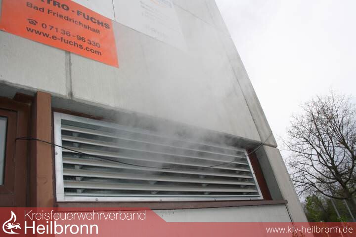 Arbeiten an der Heizungsanlage der Glück Auf Halle, führten am vergangenen Montag zu einem Schwelbrand der innerhalb kürzester Zeit durch Sauerstoffzufuhr zu einem ausgedehnten Brand führte, welcher über die Außenfassade auf das Dach übergriff. Ein auf dem Dach beschäftigter Mitarbeiter, einer ebenfalls bei dem Objekt befindlichen Zimmerei, der auf dem Dach gefangen war, bemerkte den Brand und meldete ihn bei der Leitstelle Heilbronn unter dem Euronotruf 112. Ein Monteur der Heizungsfirma die die Wartungsarbeiten im Heizraum ausführten galt zu diesem Zeitpunkt als vermisst.