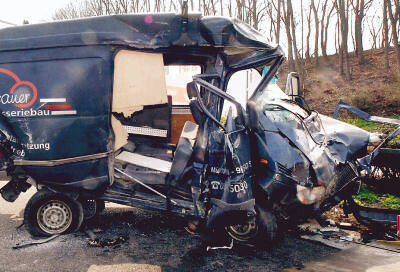 Bild: Der Fahrer dieses Kleintransporters starb an der Unfallstelle. Offenbar konnte er noch aus dem Fahrzeug aussteigen, brach dann aber auf der Autobahn zusammen. Ein Sachverständiger soll den genauen Unfallhergang klären. (Foto: Dittmar Dirks)