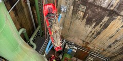 Die erste Aufgabe war der Vorstieg und die Rettung eines auf eine Rohranlage gestürzten und in exponierter Lage liegenden absturzgefährdeten Arbeiters mit Schleifkorbtrage, Flaschenzug und Redundanz nach unten bei gleichzeitiger Sicherung von 2 Vorsteigern bzw. Rettern. Hier war absolutes Teamwork gefragt.
