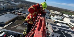 Am 2. Tag wurden dann bereits die Grundlagen der Rettung mit Dreibaum oder Tripod, Schleifkortrage oder wahlweise Roll-Up-Trage, sowie Möglichkeiten der Toprope-Sicherung über die Drehleiter geübt. Am Nachmittag führte uns unser Weg zur Firma Südzucker nach Offenau. Dort wurden ein horizontaler Vorstieg an einer Gebäudestruktur sowie das Ablassen eines Retters in eine Grube und Rettung eines Arbeiters mit einem Rettungsdreieck geübt.