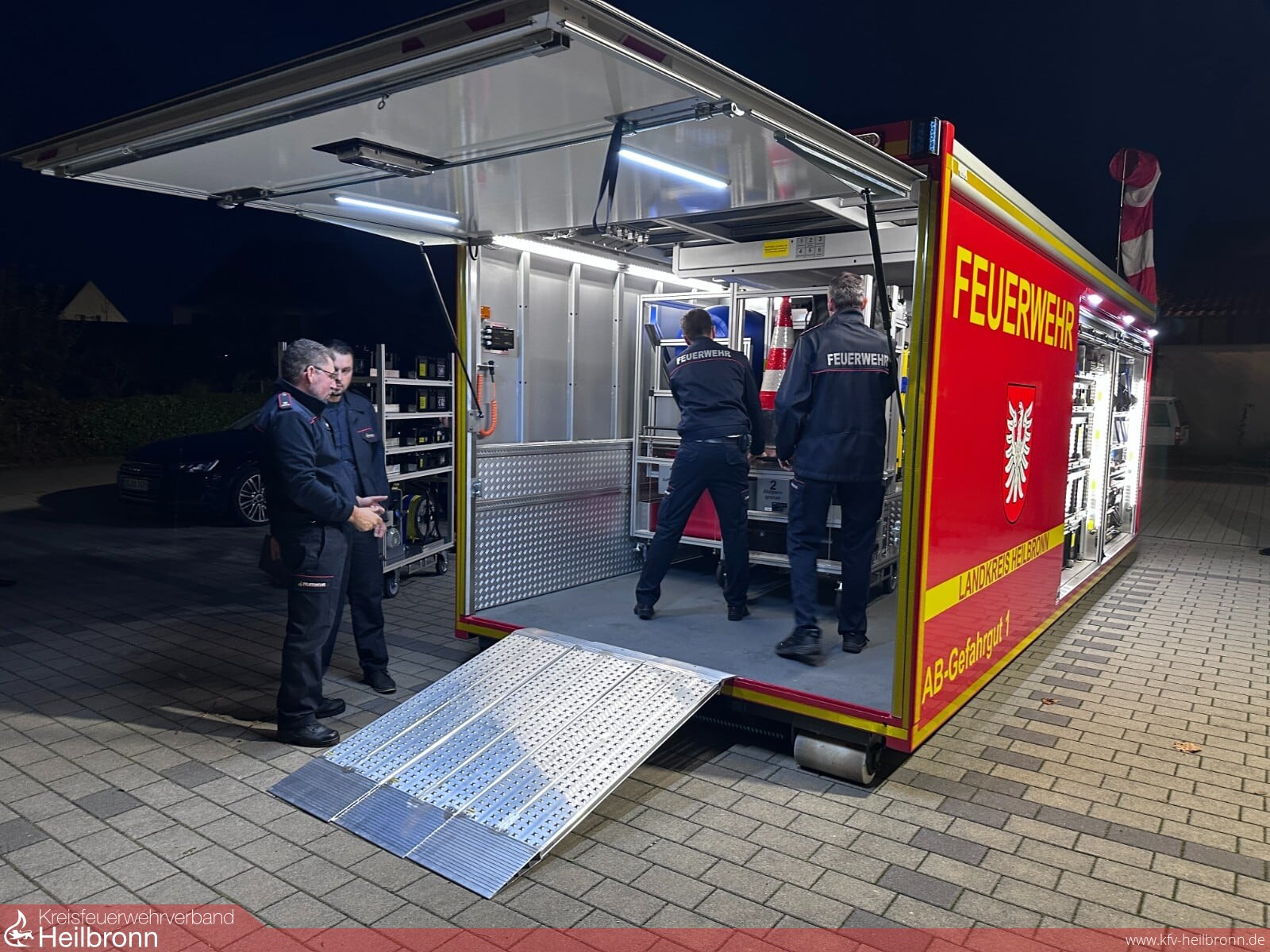In den Pausen stand einer der zwei neuen Abrollbehälter Gefahrgut des Landkreises Heilbronn zur Besichtigung zur Verfügung.