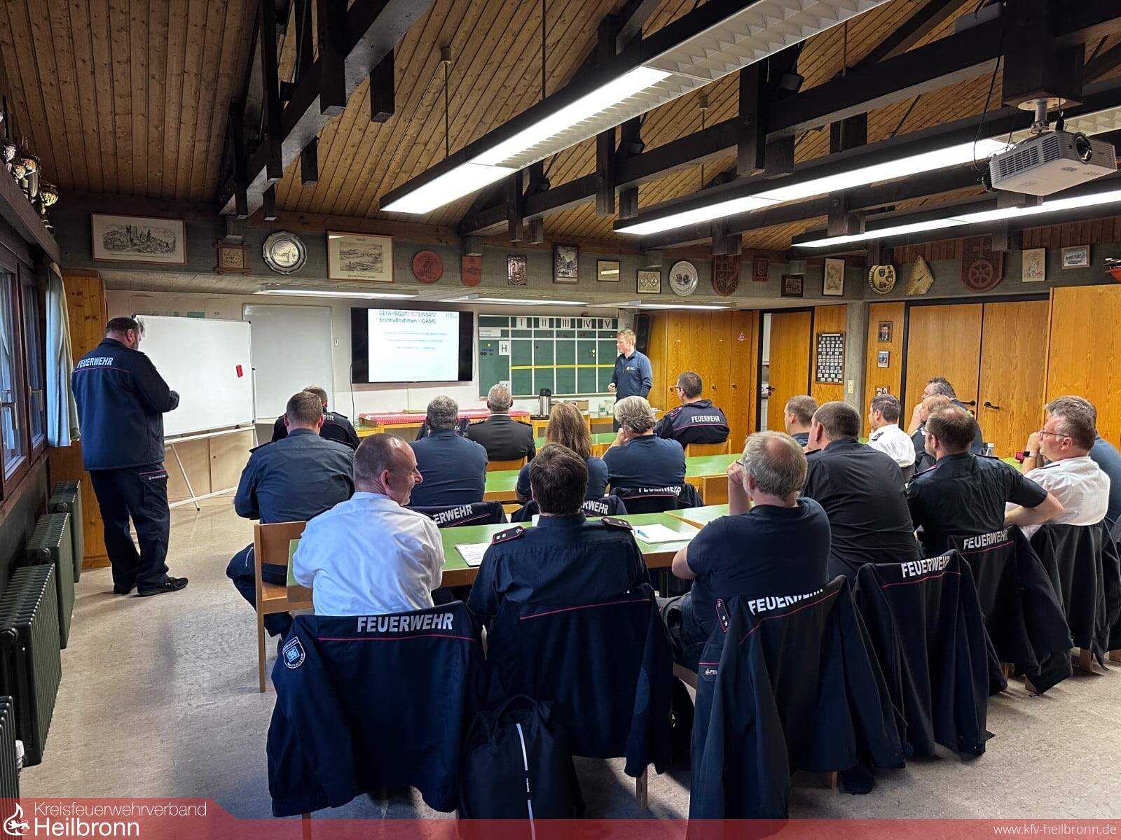 Am 18.10.2024 und 19.10.2024 hat in den Räumlichkeiten der Feuerwehr Gundelsheim eine Führungskräftefortbildung des Landkreises Heilbronn über das Thema Gefahrstoff-Einsätze bzw. Gefahrstoffersteinsatz stattgefunden. 35 Zugführer aus 17 Landkreisfeuerwehren und 2 Werkfeuerwehren folgten der Einladung.