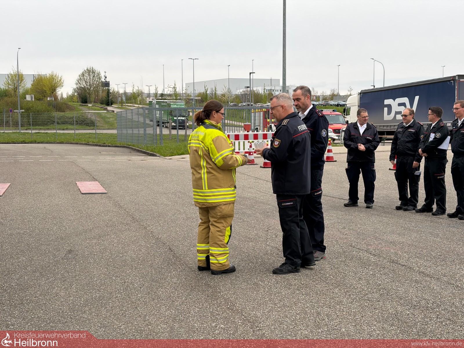 Insgesamt 60 Teilnehmende stellten sich den Herausforderungen des Parcours, bei dem vor allem Präzision und sicheres Fahrzeughandling gefragt waren. Kreisbrandmeister Bernd Halter sowie seine Stellvertreter Heiner Schiefer und Uwe Thoma überreichten gemeinsam mit dem Schiedsrichterteam aus dem Landkreis und der Stadt Heilbronn die verdienten Abzeichen.