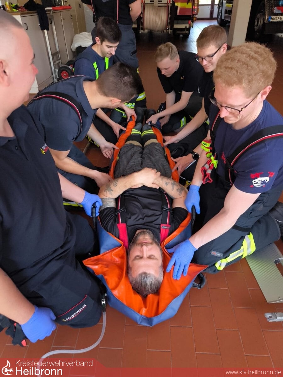 Im Rahmen der Ausbildungseinheit Rettung wurden unsere Ausbilder erneut an einem Nachmittag dankenswerterweise durch das Deutsche Rote Kreuz – Ortsverein Neckarsulm - unterstützt. Dieses stellte den Bevölkerungsschutz-Krankentransportwagen zum praktischen Üben zur Verfügung. Ein herzliches Dankeschön an den Ortsverein Neckarsulm des Deutschen Roten Kreuzes für die gute Zusammenarbeit!
