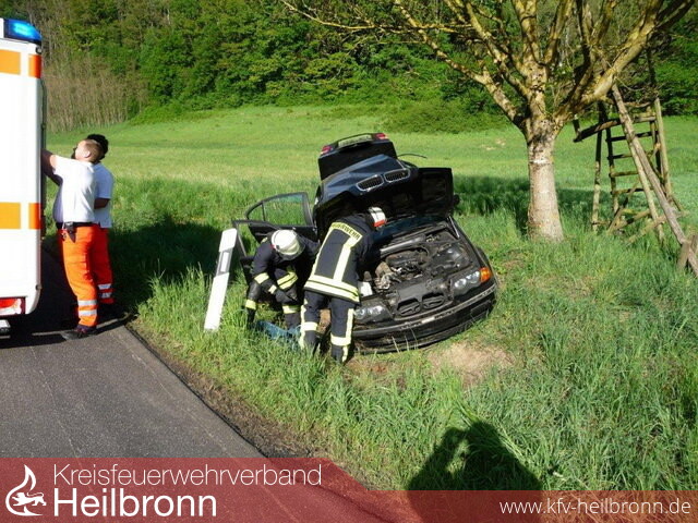Auf der K 2133, zwischen Widdern und Widdern-Unterkessach, war eine 19-jährige Frau aus bisher nicht geklärten Umständen von der Fahrbahn abgekommen und mit ihrem Fahrzeug seitlich einen Baum geprallt.