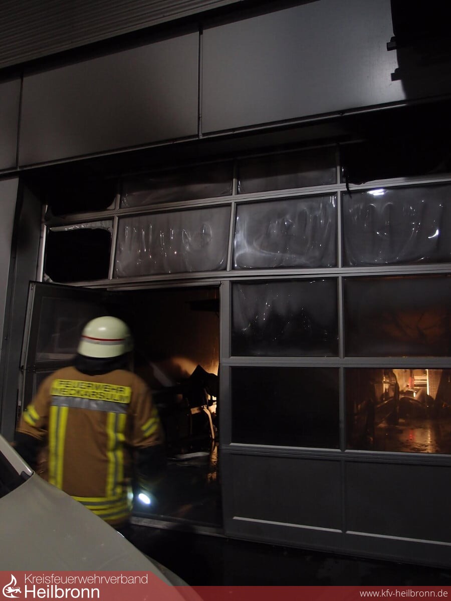200.000 Euro Sachschaden entstand nach ersten Schätzungen bei einem Brand am Montagabend in Neckarsulm-Obereisesheim. Die bisherigen Ermittlungen der Polizei ergaben, dass in einem Verteilerkasten im Gebäude eines Autohauses in der Neckargartacher Straße vermutlich aufgrund eines technischen Defekts ein Schwelbrand ausbrach. Die Flammen griffen auf ein Regal über, in dem sich Reinigungsmittel befanden. Nachdem diese Feuer gefangen hatten, gab es eine sehr starke Hitzeentwicklung und eine explosionsartige Ausweitung der Flammen. Dadurch wurden sogar Tore nach außen gedrückt. Neben dem Gebäude und der Einrichtung wurden auch zwei PKW in Mitleidenschaft gezogen. Am Brandort war die Freiwillige Feuerwehr Neckarsulm mit neun Fahrzeugen und 32 Einsatzkräften.