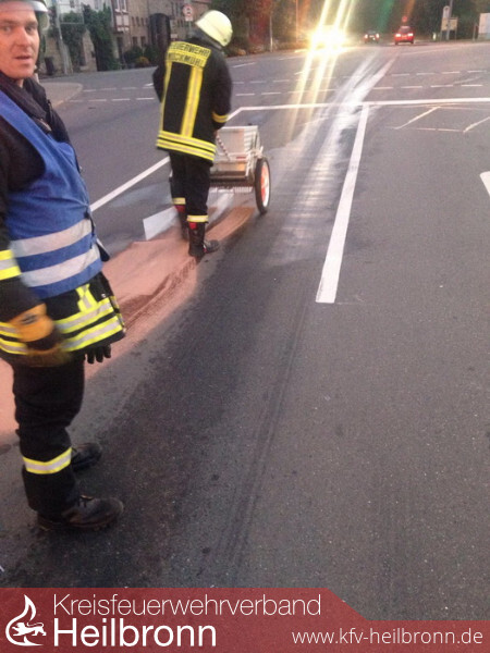 Zur Aufnahme von ausgelaufenem Dieselkraftstoff sowie zur Beseitigung einer Ölspur wurde die Abteilung Möckmühl auf die L 1095 gerufen.
