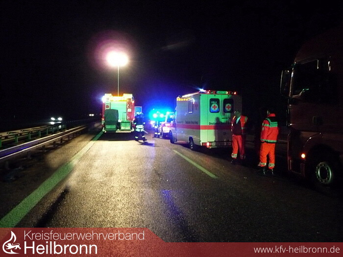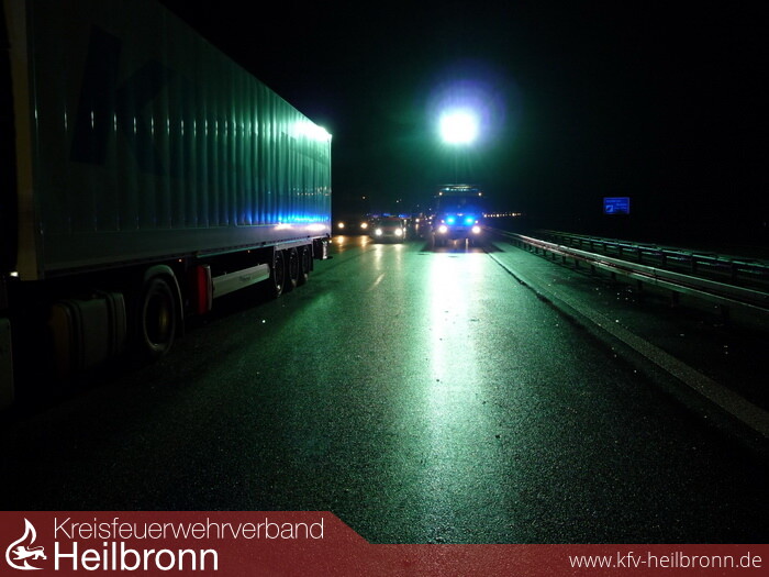 Zur Hilfeleistung für die Polizei wurde die Feuerwehr Möckmühl auf die BAB 81, kurz vor der AS Neuenstadt, zur Ausleuchtung einer Unfallstelle angefordert.