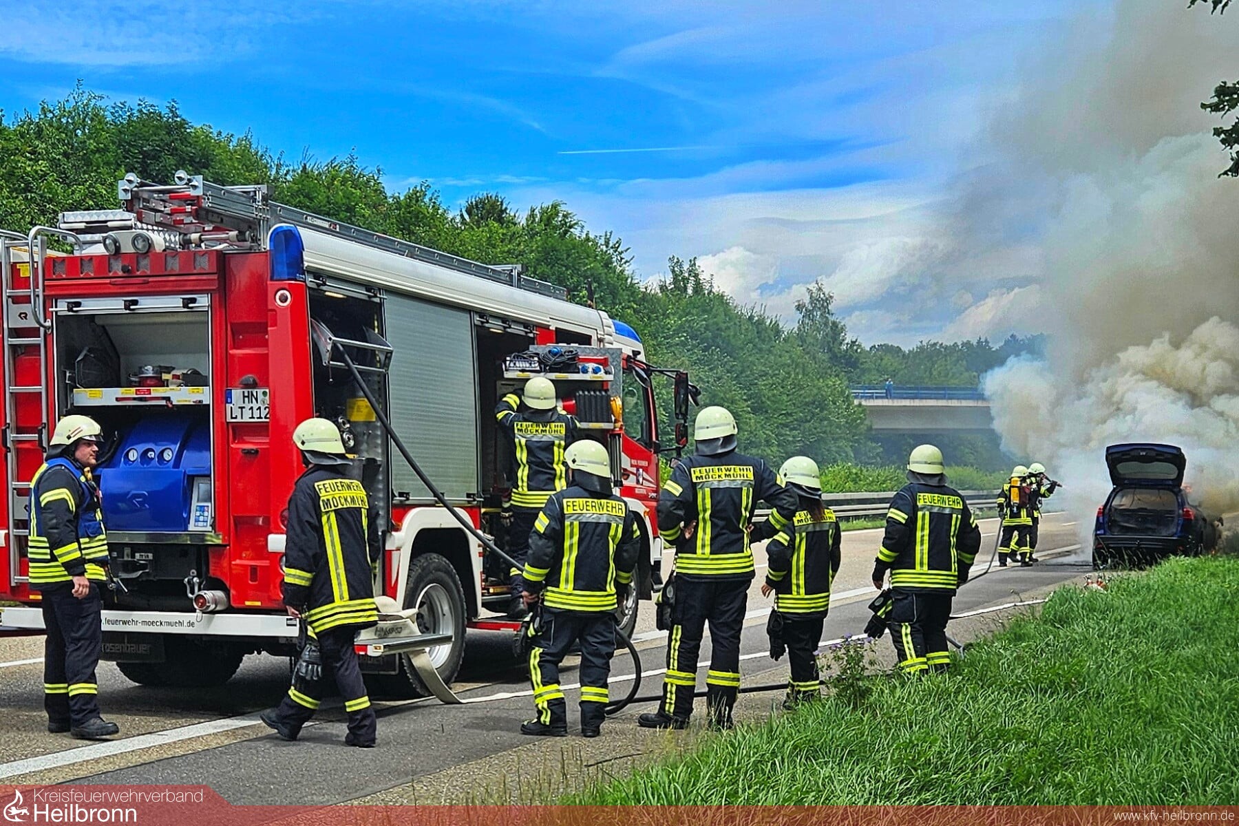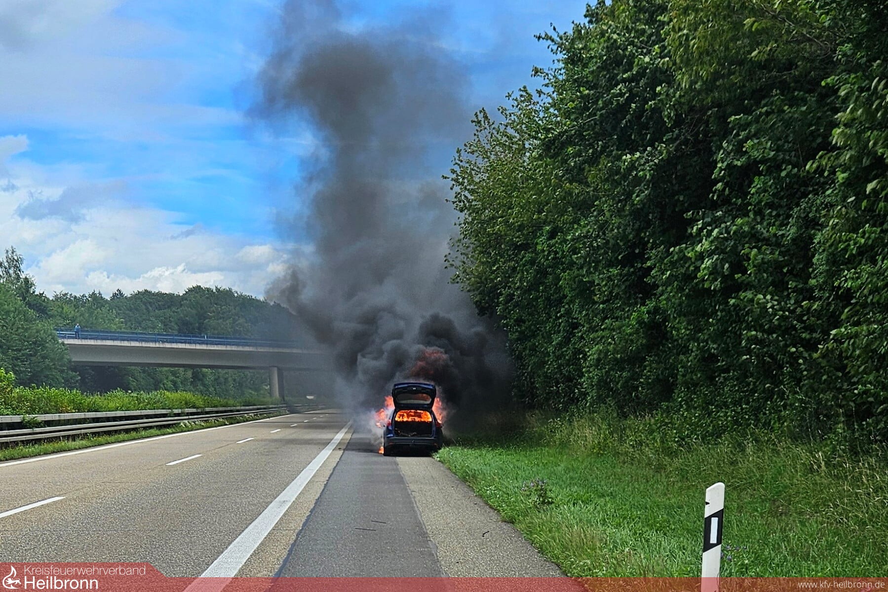 Nach der Anschlussstelle Möckmühl in Fahrtrichtung Würzburg kam es auf der Autobahn zu einem PKW-Brand. Beim Eintreffen der Einsatzkräfte stand das Fahrzeug bereits im Vollbrand. Unter Vornahme eines Schnellangriff-Wasser wurde dieser unter Atemschutz abgelöscht.