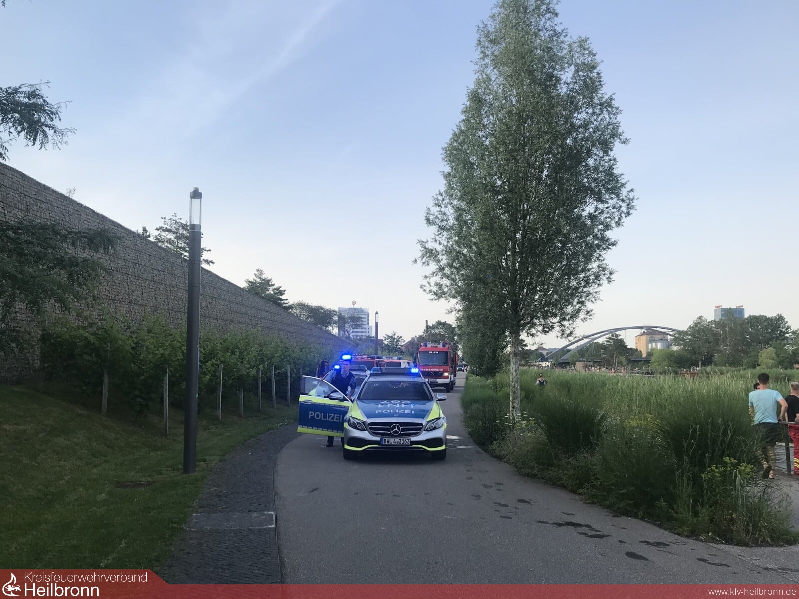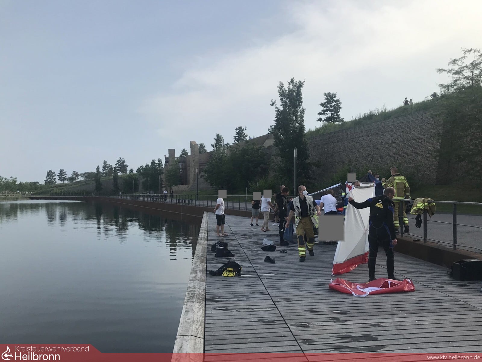 Am späten Freitagnachmittag suchten drei Personen am Karlsee auf dem ehemaligen BUGA-Gelände Abkühlung. Einer der drei Männer watete durch den ca. 80 Zentimeter tiefen Uferbereich. Kurze Zeit später verschwand er jedoch im tieferen Wasser. Zeugen und kurz nach dem Notruf eintreffende Streifenwagenbesatzungen begannen sofort mit der Suche nach dem 22-Jährigen. Die ebenfalls kurz darauf eintreffende Feuerwehr setzte Rettungsschwimmer sowie eine Drohne zum Absuchen des Sees ein. Nach wenigen Minuten konnte die Person mit der Drohne entdeckt und gerettet werden. Obwohl eine sofortige Reanimation erfolgreich verlief, verstarb der junge Mann kurze Zeit später im Krankenhaus.