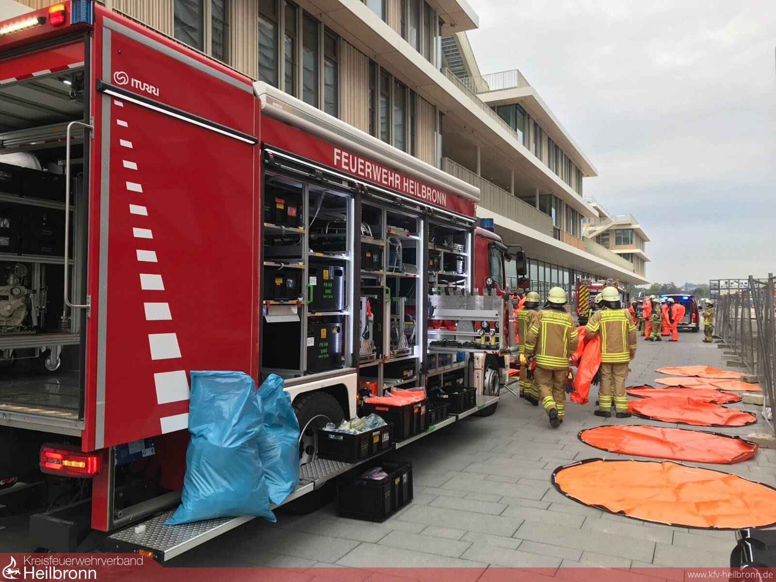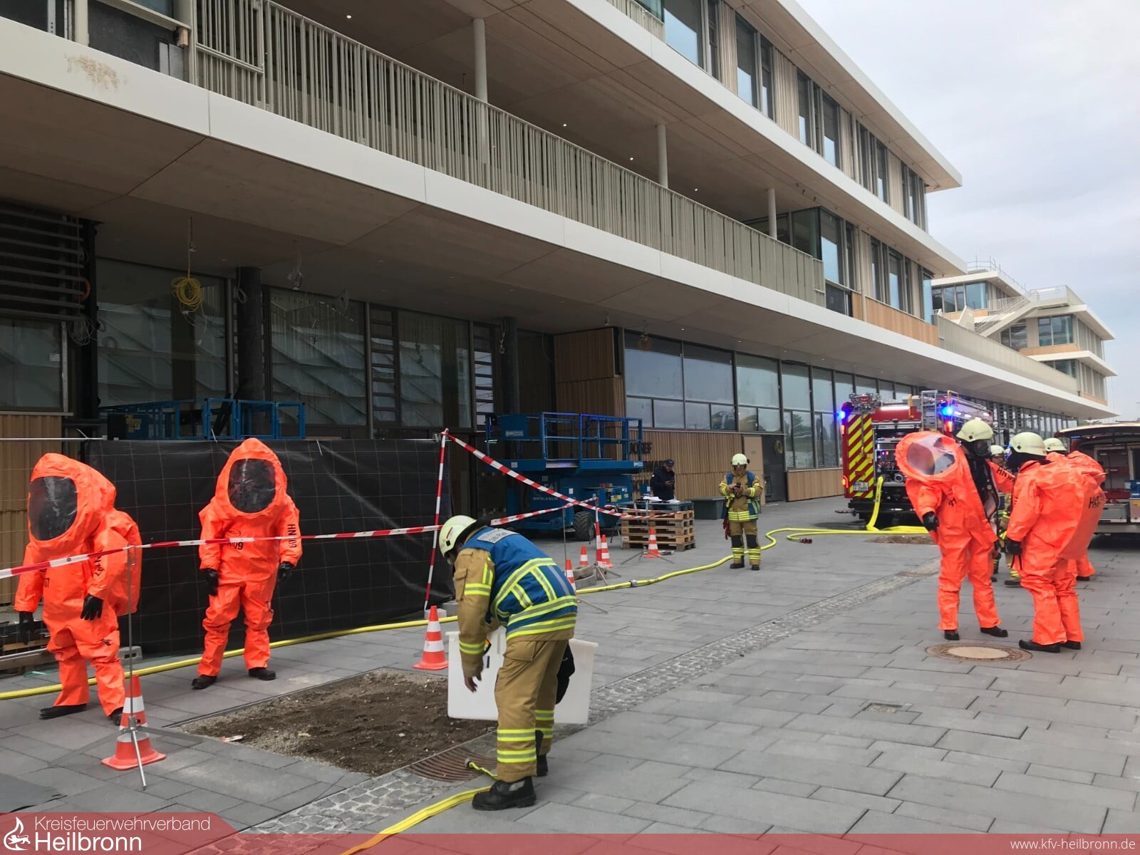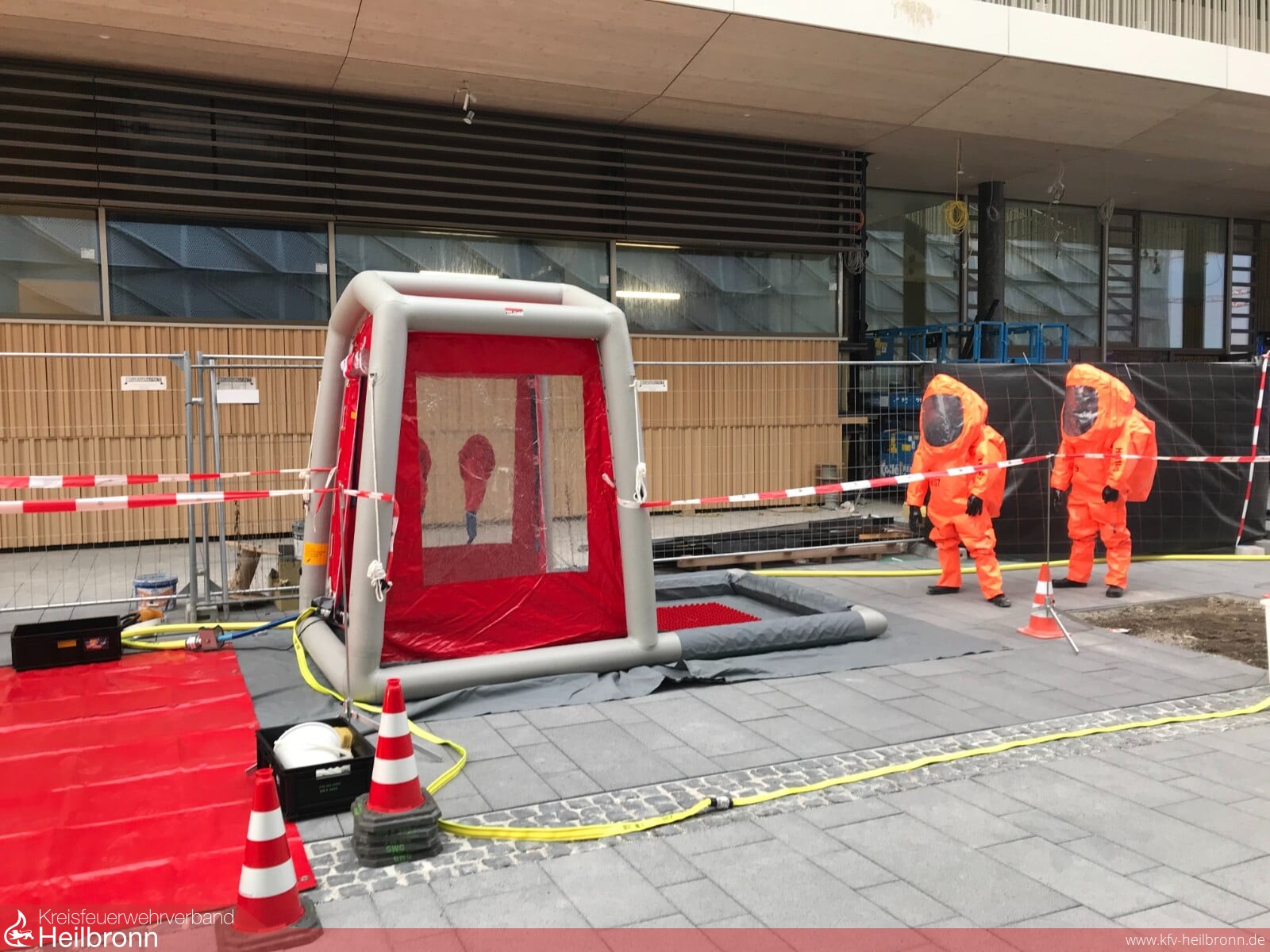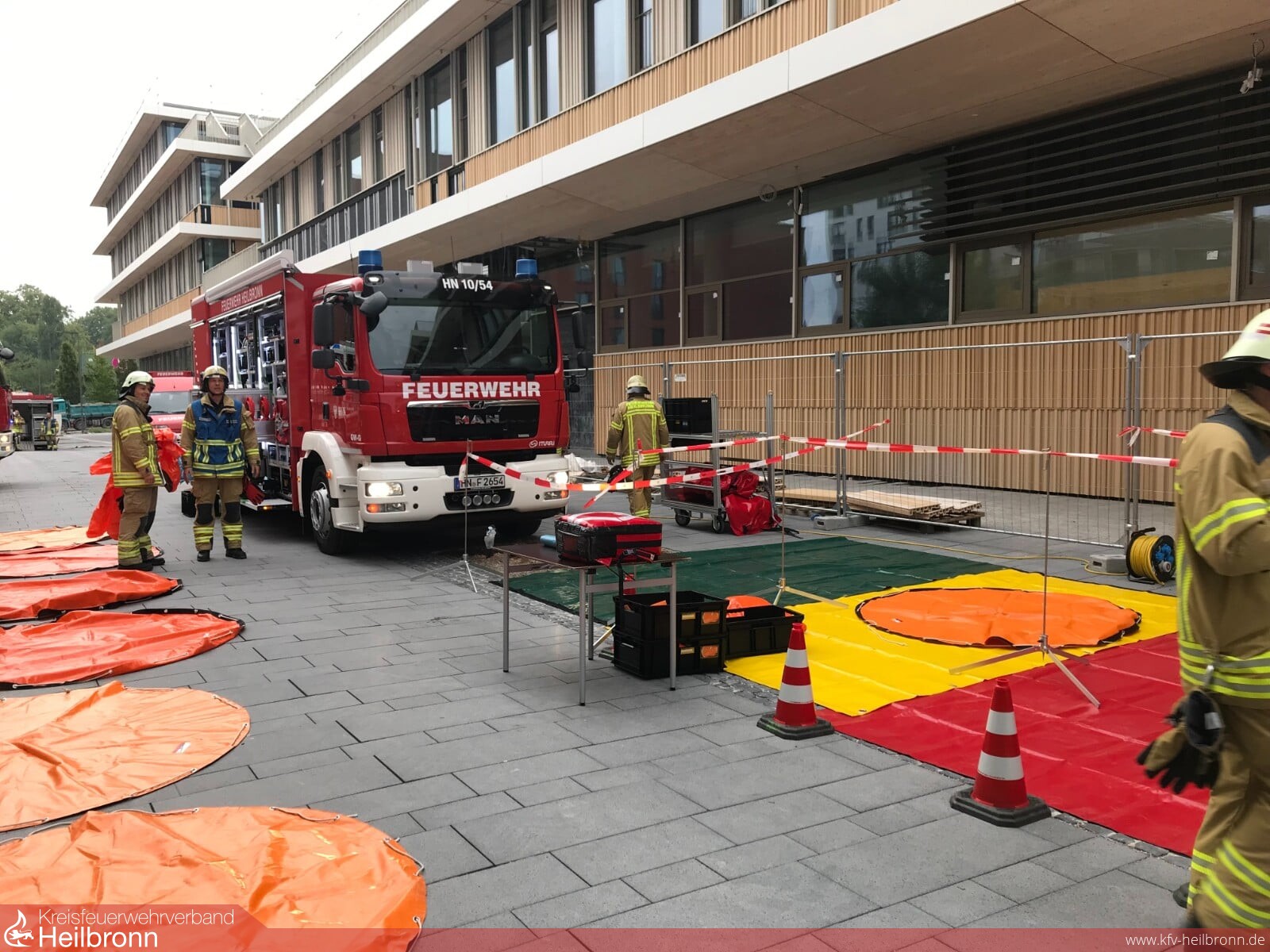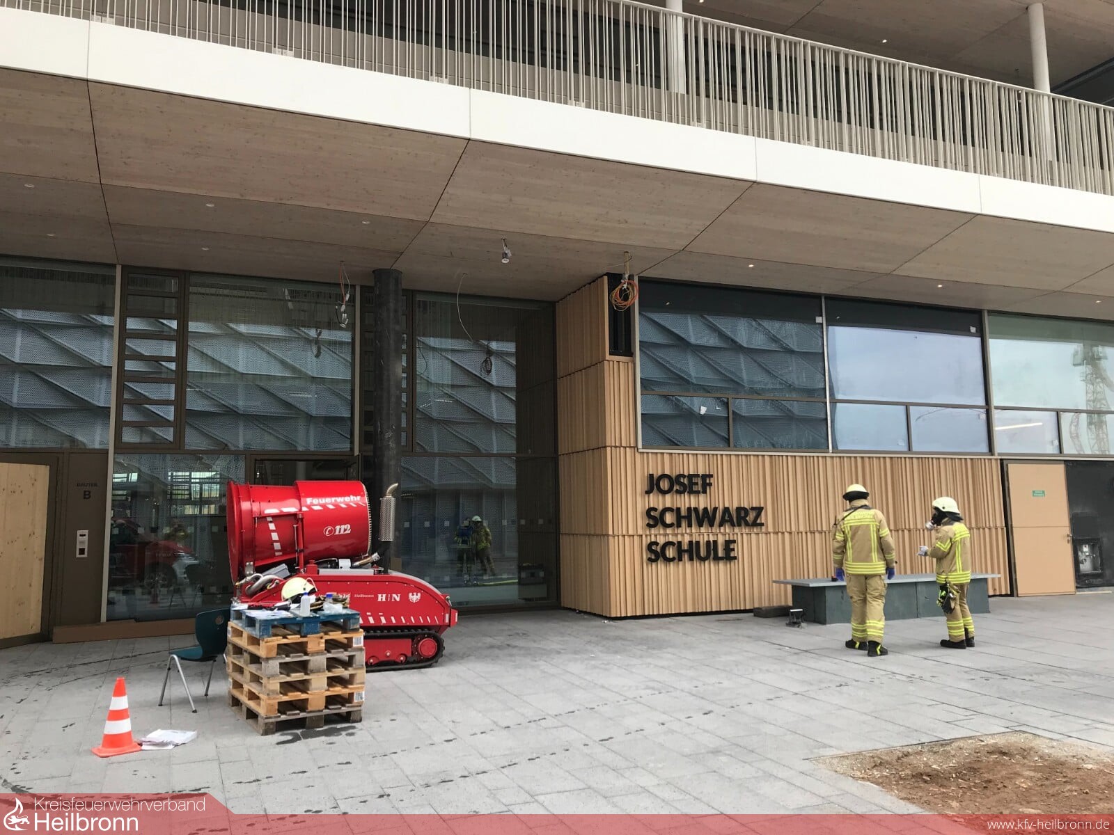 Die Feuerwehr Heilbronn war am heutigen Montag mit mehreren Kräften in der Josef-Schwarz-Schule in der Erich-Mendelsohn-Straße im Einsatz. Der Sicherheitsdienst der Schule hatte einen stechenden Geruch bemerkt und die Feuerwehr alarmiert. Anschließend löste er den Räumungsalarm aus. Erste Erkundungen der Feuerwehr ergaben, dass Ammoniak aus einer Klimaanlage entweichen konnte. Sämtliche, angrenzenden Gebäudeteile wurden ebenfalls geräumt und kontrolliert. Neben dem Gefahrgutzug befanden sich auch die Gefahrstoffeinheiten „CSA-Gruppe“ und „GW-Dekon“ vor Ort. Die Einsatzkräfte lokalisierten die Leckage und führten Maßnahmen zur Beseitigung des Gefahrstoffes aus dem Gebäude durch. Zur Verwirbelung der abgeführten Luft kam auch das LUF 60 (Lösch-Unterstützungsfahrzeug) zum Einsatz.