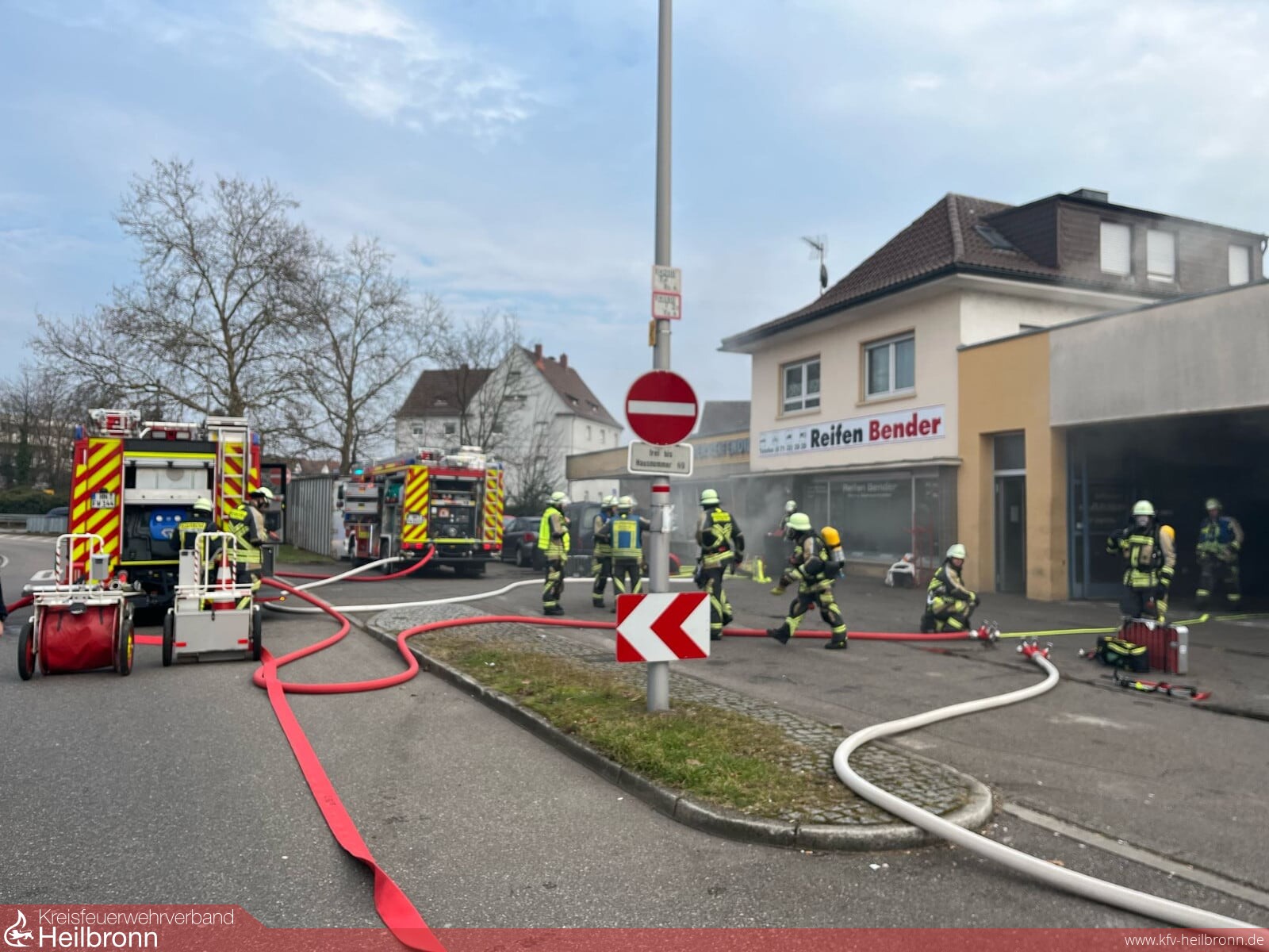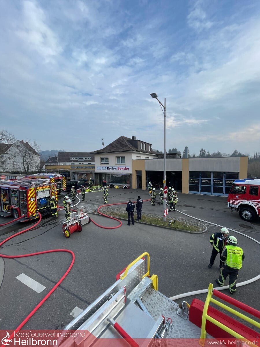 Die Feuerwehr Neckarsulm wurde am 10. Februar 2025 gegen 14.15 Uhr durch die Integrierte Leitstelle Heilbronn mit dem Stichwort „Wohnungsbrand“ zu einem Wohn- und Geschäftsgebäude in Neckarsulm alarmiert. Beim Eintreffen der Einsatzkräfte war bereits eine starke Rauchentwicklung aus dem gesamten Objekt erkennbar. Bei dem Objekt handelte es sich um eine Werkstatt mit zwei Untergeschossen für Räder und Reifen sowie einem angebauten Wohngebäude.