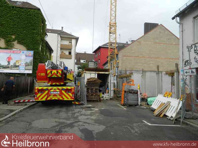 Ein Arbeitsunfall auf einer Baustelle ereignete sich um 11.23 Uhr in der Heilbronner Schwibbogengasse.