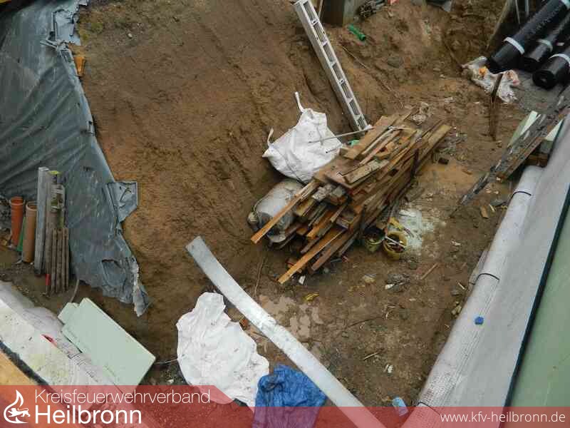 Der Bauarbeiter stürzte mit seiner Leiter in einer Baugrube um und prallte mit dem Bein unglücklich auf einen Betonvorsprung. Hierbei zog er sich schwere Knieverletzungen zu.